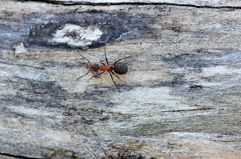 Kävin (JR) tiistaina marskiviholaisten koloniapaikalla. Oli käytännössä vielä veden peittämä. Piti varovasti kävellä mättäältä toiselle, koska muutoin myös pitkävartiset saappaat olisivat reilusti hörpänneet. Saas nähdä miten marskien käy. Kuvaamisesta tietty ei tullut mitään – ei ollut kumivenettä eikä marskeja. Nyt ei ollut kertakäyttösadetakistakaan apua. Ilmeisesti Tiistinpuro tehnyt marskipaikan vetiseksi aiempien sateiden seurauksena. Kun oli agendalla muurahaisten kuvaaminen, piti tietysti etsiä korvike. Sattumalta osuin paikalle, kun kekomuurahaisilla oli taistelu käynnissä Tiistilän liito-oravametsässä olevan kaatuneen puun rungolla. Tappoivat toisiaan ja ruumis kuljetettiin pois. Kaksi imperiumia iski yhteen?