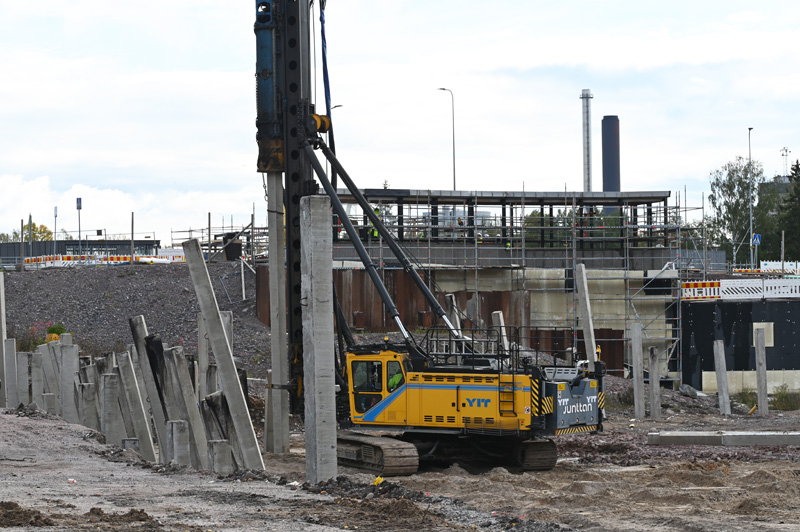 Kaitaantien pohjoispuoli Hannuksen alueella nousee uusia taloja ja loput alueet on tiheään paalutettu (vanha merenpohja).