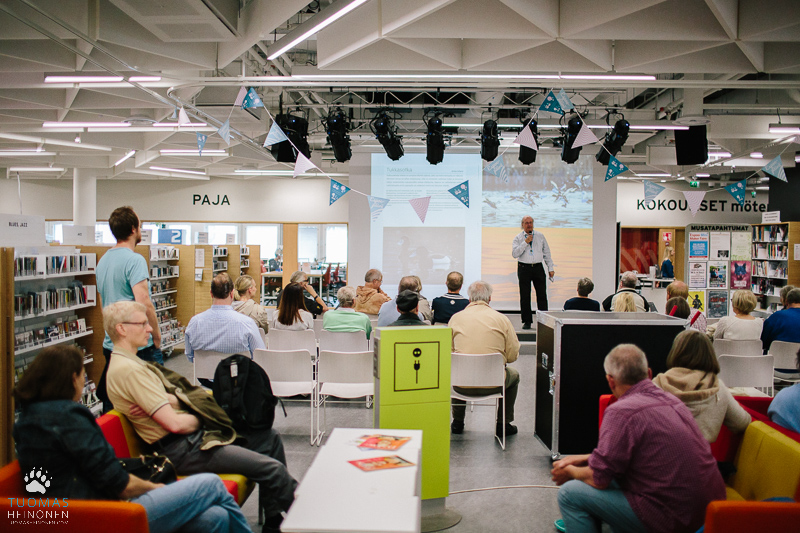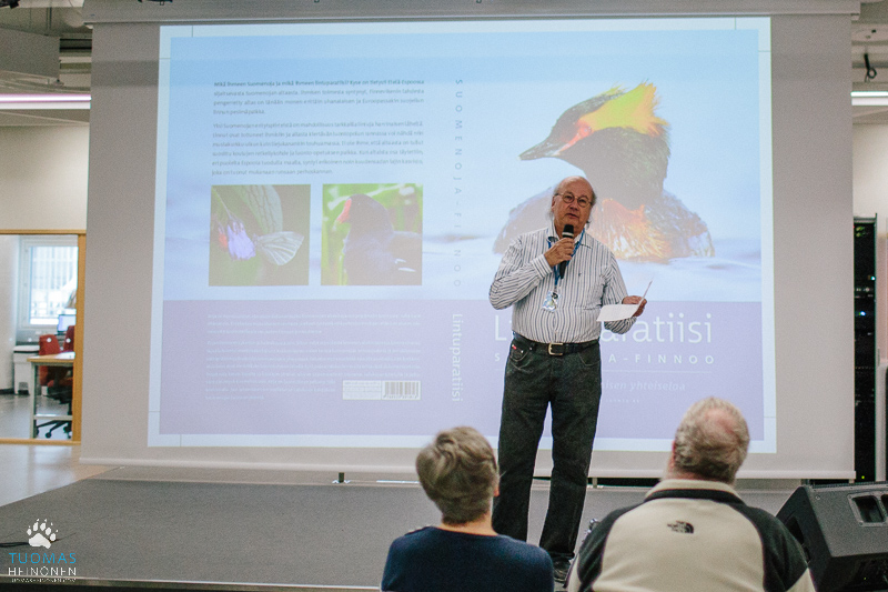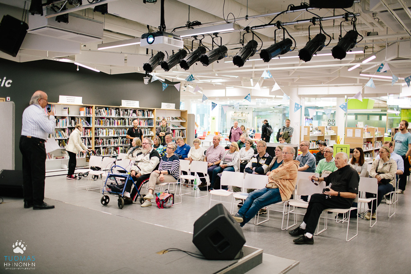 Lintuparatiisi-kirjamme julkistettiin Espoo-päivänä26.8 Ison Omenan Palvelutorin Stagella. Jukka kertoi lyhyesti kirjan taustoista ja tekemisen prosessista. Esityksen aikana kuulijoita oli arvioilta noin 50 ja sen jälkeen kuvaajat olivat kiireisiä jakaessaan nimikirjoituksia. Kirjasta kiinnostuneita tuli lisää vielä tässä vaiheessa. Kirjoja lunastettiin yli 70 kappaletta.