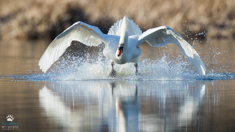 - Kyhmyjoutsen on laskeutunut – Kuva: Tuomas Heinonen