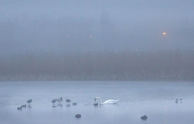 Laitetaanpa vielä muutama sana altaan joutsenista. Harmonia ja rauha näytti palanneen keskiviikkona Suomenoja’n joutsenlammelle edellisen viikonlopun tappelujen jälkeen. Eteläisen lintutornin edustalla oli pari rauhallisena ja omissa oloissaan. Pari salli (vielä tuolloin) yksinäisen joutsenen itäisessä osassa, jossa oli jo jonkinverran sulaa. Viikonloppuna tilanne muuttui: pari teki hyökkäyksiä useasti ja lopulta yksinäinen karkotettiin. Tähän liittyy mielenkiintoinen kysymys: onko tämä yksinäinen kahden vuoden vuoden takainen leski? Kaksi vuotta sitten pariskunnasta toinen kuoli (peto, tappelu? – löytyi kuolleena ruovikosta) haudontavaiheessa. Leskeksi jäänyt hautoi hetken yksin, mutta hylkäsi pesän. Vuosi sitten yksinäinen kyhmy lenteli useasti altaan yläpuolella töräytellen. Kyhmythän ovat pari- ja paikkauskollisia, joten leski saattaa olla leskenä lopun elämäänsä. Allas on ollut jo vuosia kyhmyjen haluttu ja taisteltu pesimäpaikka, joten ei ole ihme, että sen olisi nopeasti ominnut toinen pari ja leski palaisi etsimään puolisoaan.