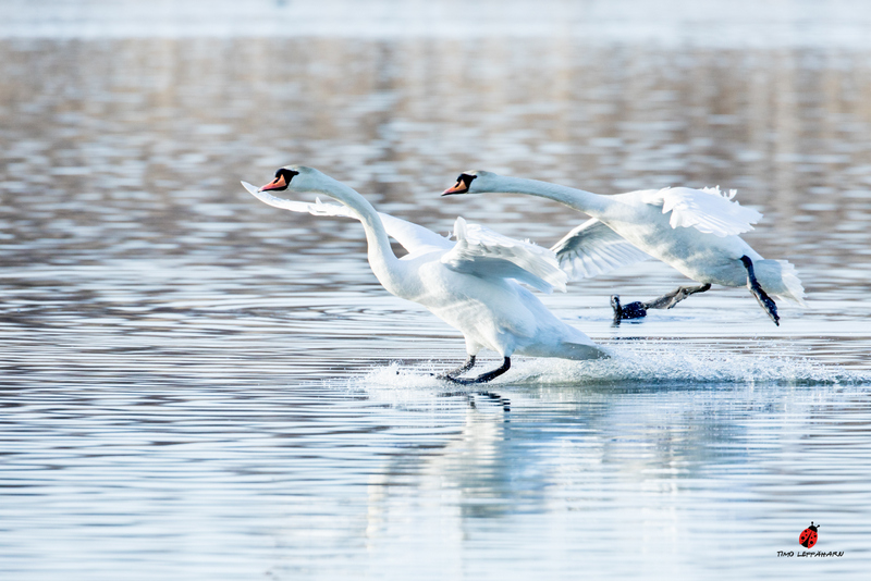 - Kyhmyjoutsenten kisailua – Kuva: Timo Leppäharju