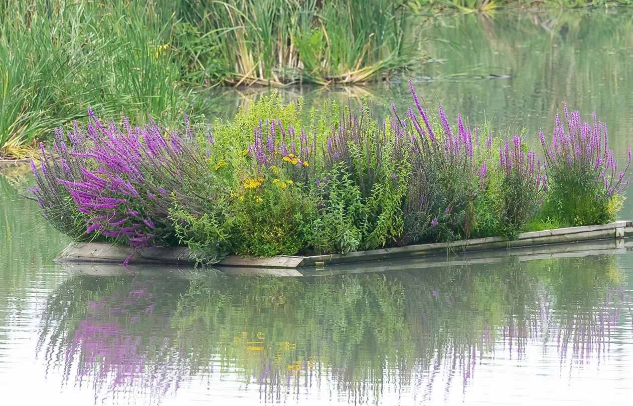 Kasvillisuus on altaiden ympäristössä vaikuttavan rehevää. Hauska yksityiskohta on kaksi lokkilauttaa, ne oikein loistavat värikkäinä – istutettujen siementen myötä ja lokkien hyvin lannoittamina.