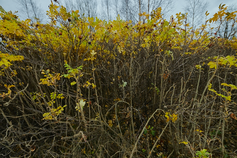 Puissa on hyvin vähän enää lehtiä, mutta maanpinnnalta voi löytää paljon väriä. Ruska on siirtynyt maan tasolle. Pahikset eli kurtturuusut hohtavat päällekäyvän keltaisina. Joutsenperhe on edelleen altaalla. Poikaset ovat jo miltein vanhempiensä kokoisia. Muutama telkkänaaras sukelteli altaalla. Pieneköjä, muutaman linnun tilhiparvia lenteli ja istuskeli puiden latvoissa.