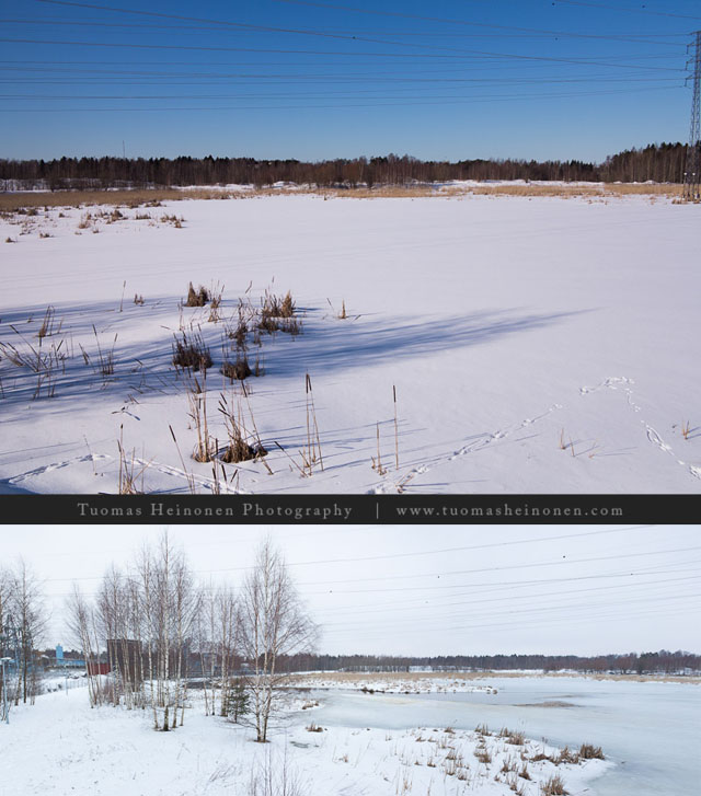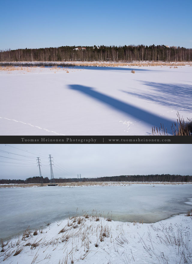 Viime vuonna kevät oli selkeästi pidemmällä kuin nyt. Allas oli jo lähtenyt sulamaan jätevedenpuhdistamon kulmasta ja eteläisen tornin edustan jää oli sen väristä että sen sulaminen oli päivistä kiinni.
