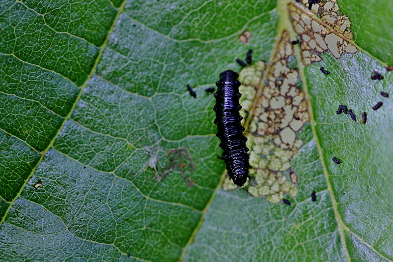 Idänlehtikuoriainen sen sijaan palasi toukkana. Toukkia on runsaasti ja näyttää tapahtuvan se, mitä pystyi ennakoimaan Metsäntutkimuslaitoksen sivuilta: toukat täydentävät kuoriaisten työn ja syövät lepän lehdet ritilöiksi, ainoastaan lehtisuonet jäävät jäljelle. Palataan asiaan elokuun lopulla erikoisraportin kera.
