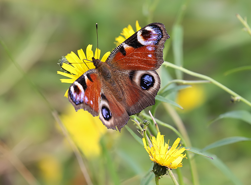 Satunnaisia vaeltajia: Sinappi- ja ohdakeperhonen.