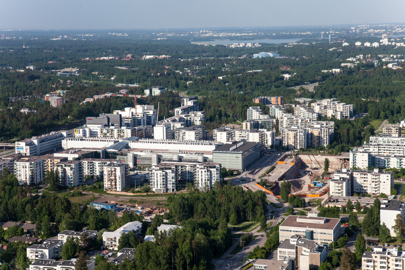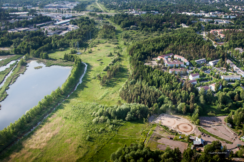 Uusi Suomenlahdenkatu yhdistää eteläistä Espoota Finnoo/Iivisniemi/Kaitaata Matinkylän tulevaan metroon. Kadun uljain osuus on lähes 370 metrinen Espoon pisin silta – Finnevikinsilta. Ilmakuvasta näkyy alue ennen sillan rakentamista ja Iso Omenan alue ennen metrotyömaan alkua. Kuvat 5.6.2013.