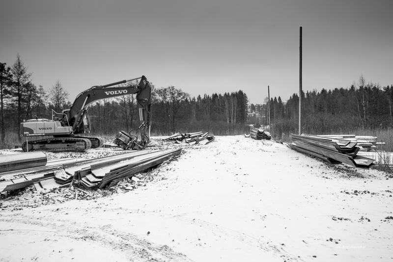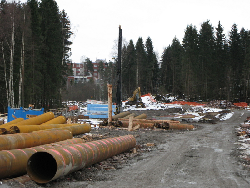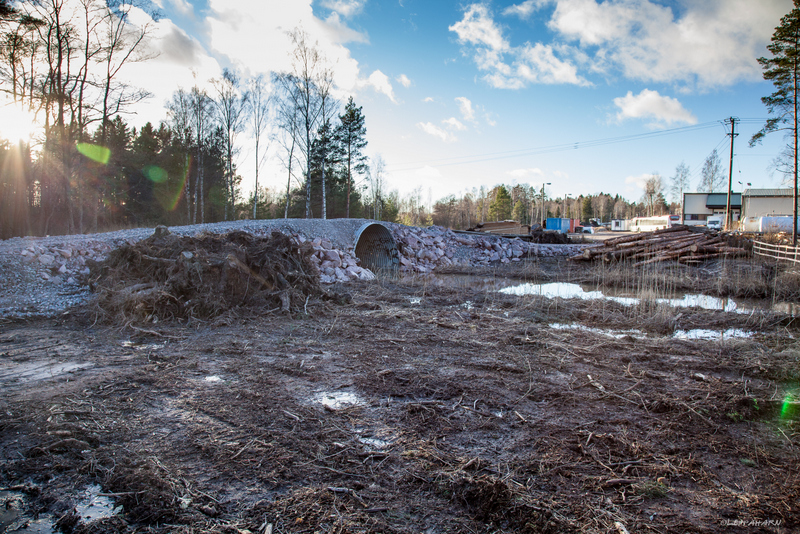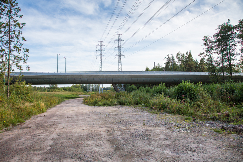 Syyskuussa 2013 alue oli vain pajupuskaa sekä pieni huoltopolku sähkötolpille. Nopeasti tuli järeämpää kalustoa kestävä tie ohi siirtolapuutarhan. Valmis silta halkoo vanhaa merenlahtea vakuuttavasti.