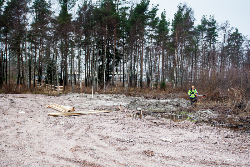 Metsurin raivattava alue oli rajoitettu etelänpuoleisella aidalla. Puron ylittävältä osalta sillan molemmille puolille jätettiin vain tarvittava varoalue, metsä onkin ihailtavan lähellä itse siltaa.