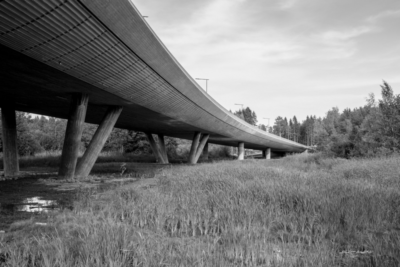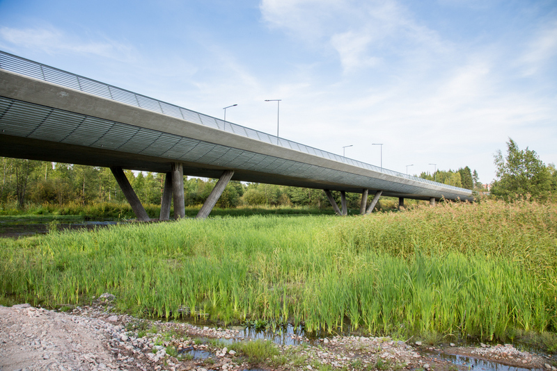 Tulvaniityn yli kulkeva silta sulautuu maisemaan sopusuhtaisesti.