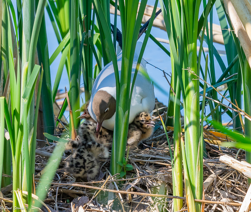 Naurulokki ja poikaset – Kuva Esa Mälkönen