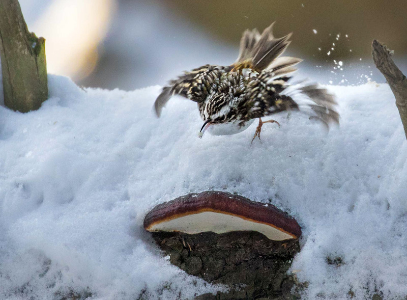 Ruokintapaikan tuntumassa viihtyy pari puukiipijää. Laji on maassamme suhteellisen uusi ruokinnan hyödyntäjä. Puukiipijät liikkuvat mielellään tiaisparvien seurassa saadakseen turvaa, sillä useampi silmäpari huomaa mahdolliset saalistajat helpommin. Mutta vähitellen puukiipijä on oppinut ilmeisesti tiaisten touhuja seuratessaan hakemaan pieniä murusia lintulaudoilta, vaikka onkin normaalisti hyönteissyöjä. Ei puukiipijä vieläkään lähellekään samalla tavalla käy kuin tiaiset, mutta voi silloin tällöin poiketa poimimaan esimerkiksi pähkinän murusen.