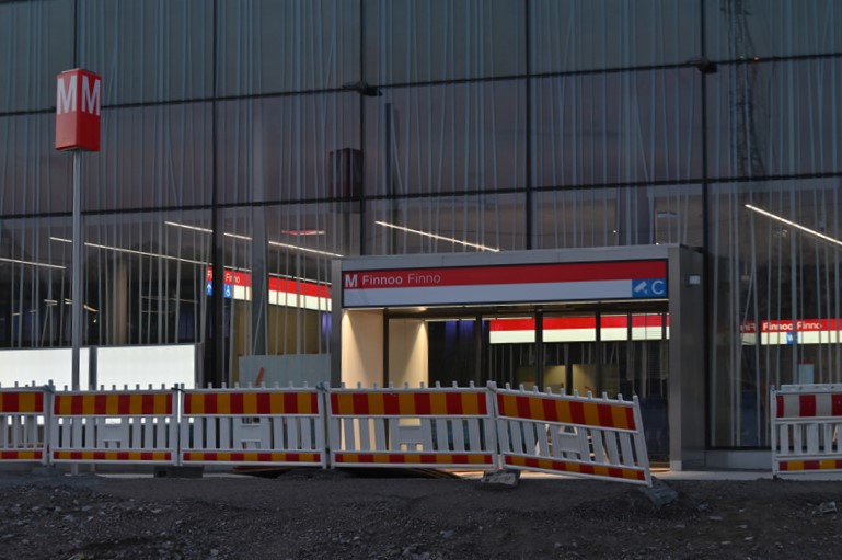 Tommi Heinonen kuvasi rakenteilla olevia kohteita pimeässä ja toteaa: Pimeällä kulkiessa Finnoon rakennustyömaalla saa aivan toisenlaisen kuvan tulevasta alueesta. Rakennuksissa mm. metroasemalla ja P-talossa ja kerrostalojen rappukäytävissä on valot päällä.
