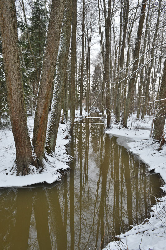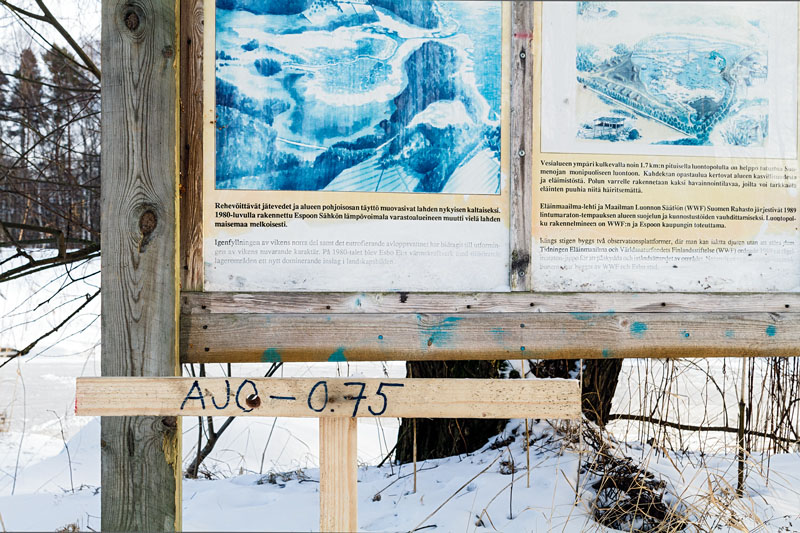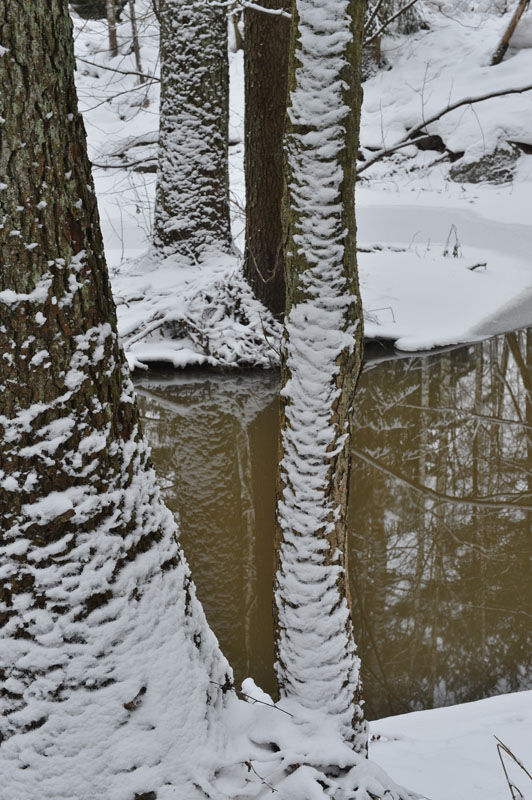 Viikon alussa sekä Finnoonpuro että Djupsundbäcken virtasivat avoimina. Jääpeite palasi pakkasen kiristymisen myötä. Polut olivat muhkuraisia ja tuoreen lumen alla oli jäistä. Jälkiä möngertäjistäkin näkyi. Liekö heränneet talviunilta edellisen lämpimän viikon aikana.