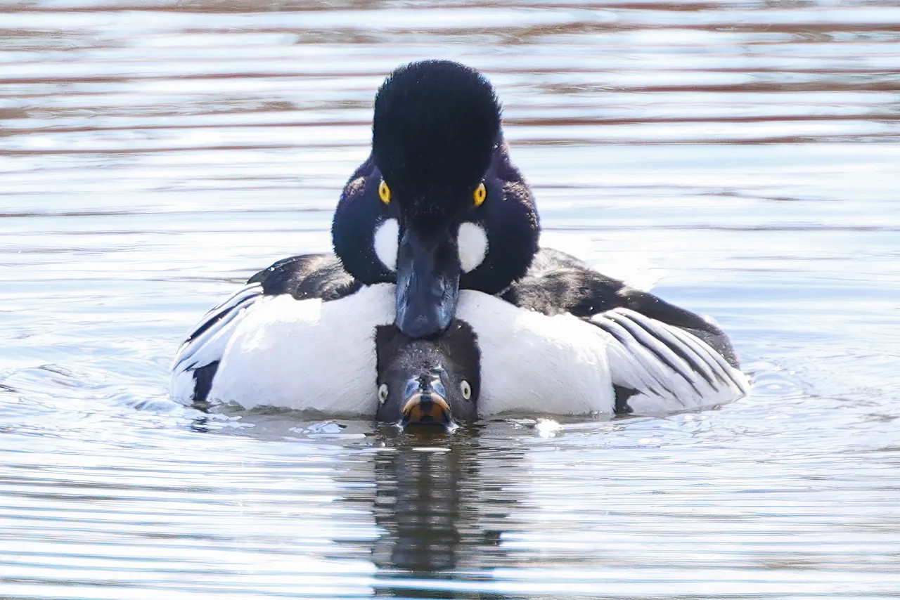 Perjantaina seurasin, kun kaksi telkkäkoirasta otti yhteen. Kamppailu oli intensiivinen ja raju. Osa kamppailusta tapahtui pinnan alla, mutta myös pinnalla. Vesi roiskui, kun osapuolet nousivat pinnalle. Niin kuin yleensä eläinten kamppailussa, se ei kestänyt kauan ja häviäjä lähti pois ja turvaan.