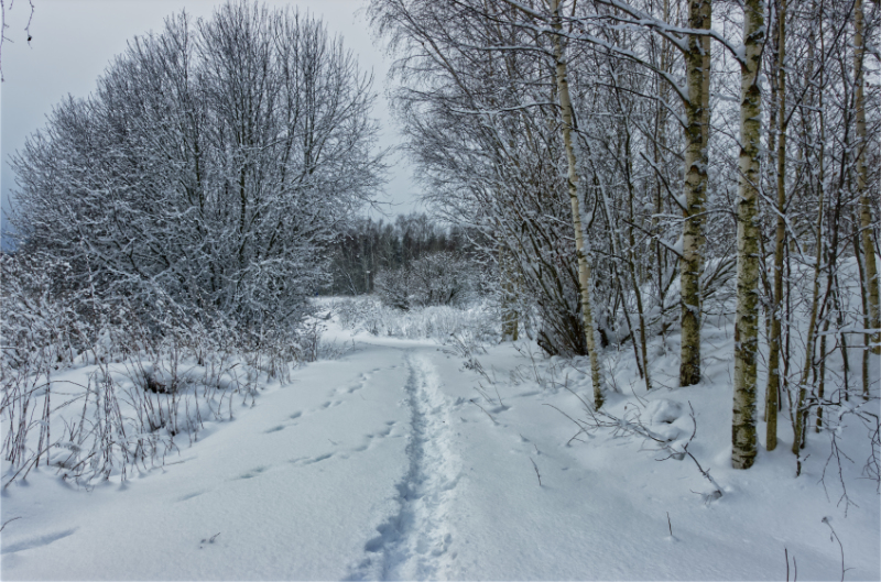 - Kävelytie lumisateen jälkeen – Kuva Jukka Ranta