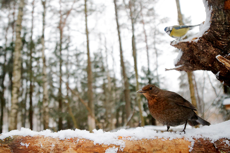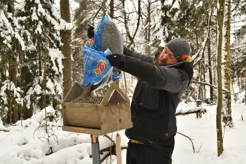 Talviruokinta aloitettiin marraskuussa. Ruokintametsikössä liikkui tavallisia lintuja