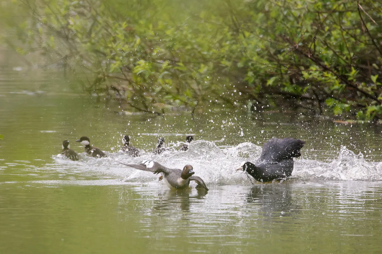 Altaalla alkaa olla runsaasti poikasia. Useilla naurulokeilla on poikasia. Jotkin poikaset odottavat vielä sisarusten kuoriutumista. Kanadanhanhilla on kolme poikasta kuten viime vuonna, ja maassa ne viihtyvät ihmisten lähellä eivätkä välitä mielenkiinnon kohteeksi olemisesta. Nokikanat ovat outoja lintuja. Ne tappelevat sekä keskenään että muiden lintujen kanssa. Useita kertoja näin neljän nokikanan tappelevan keskenään. Voimalan puolella olevassa kapeassa ja pitkässä kanavassa nokikana kävi telkkäpoikueen kimppuun. Telkkänaaras oli ilmeisesti kokenut ja näytti itsevarmalta. Se kiinnitti vihaisen nokikanan huomion. Kun nokikana oli telkkäemon kimpussa, telkänpoikaset saivat olla turvassa. Se oli hurjannäköistä, mutta poikaset selvisivät säikähdyksellä. Kerran kuulin kaverilta, että nokikana oli tappanut oman poikasensa.