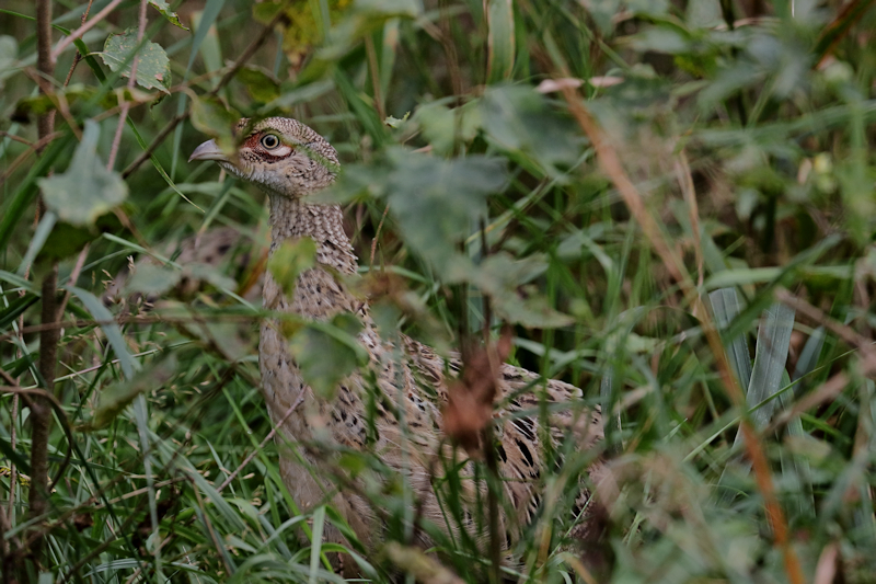 Läjityspaikalla koivut kasvavat nopeasti. Se on kohta ummessa perhosbaariin saakka. Tässä nuoressa koivikossa touhuaa/piilottelee 6 poikasen fasaaniperhe emonsa kanssa. Koivikosta kuuluu ääntelyä ja emo kurkkii huolestuneena.