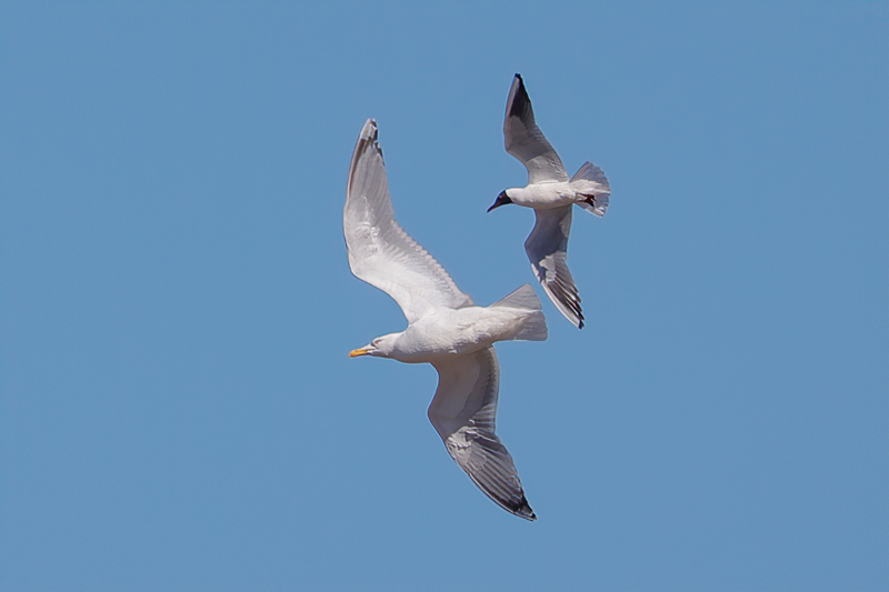 - Naurulokki hätyttää harmaalokkia – kuva Mehmet Cadiroglu