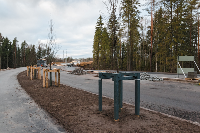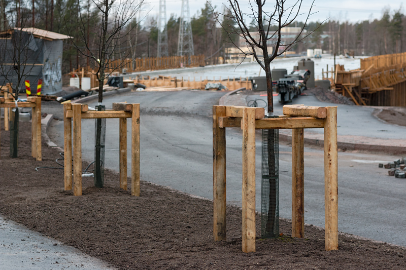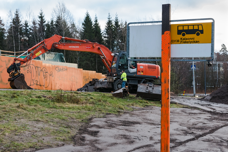 Suomenlahdentiestä on tulossa hieno puistotie/-katu. Tiistilässä nimittäin istutetaan puita jalkakäytätvän/pyörätien ja ajovaylän väliin. Finnevikin siltaa kuoritaan edelleen laudoituksista ja muoteista. Kalanonnikin on läsnä.