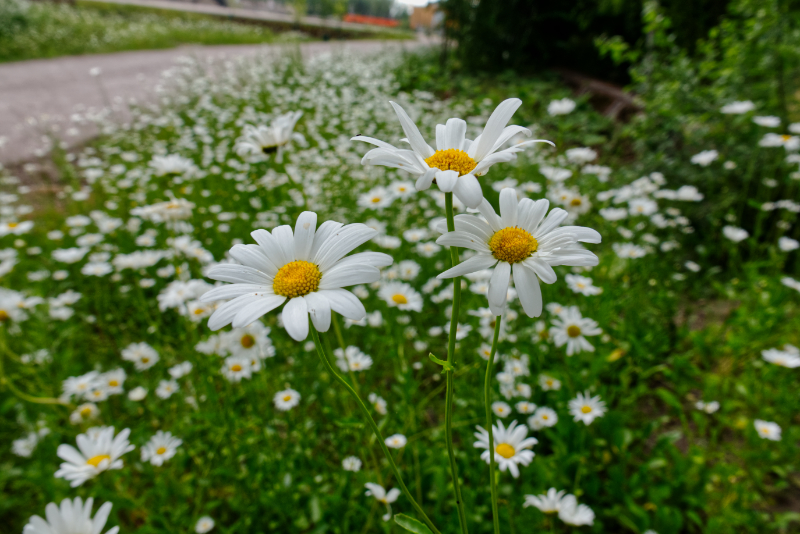 - Päivänkakkarat ruttojuurten vieressä – Kuva Jukka Ranta