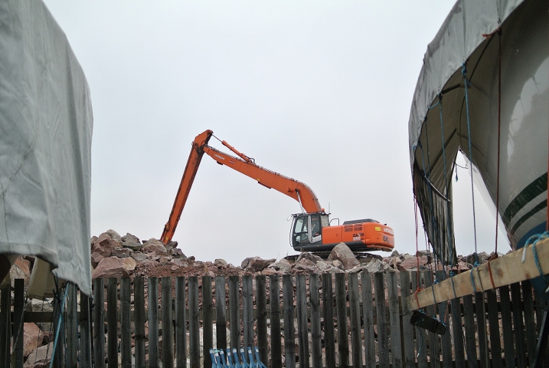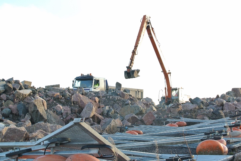 Varikon edustalla paalutus jatkuu edelleen. Tarkistetun tiedon perusteella silta tulee maan pinnalle varikon itäisen nurkan kohdalla. Siellä, missä nyt paalutetaan, kyse on tien pohjan rakentamisesta. Myös sataman täyttömaakasan päällä tapahtui. Kaivinkone valitsi ja lastasi kiviä, kuljetettavaksi Nokkalan sataman pengerrykseen,