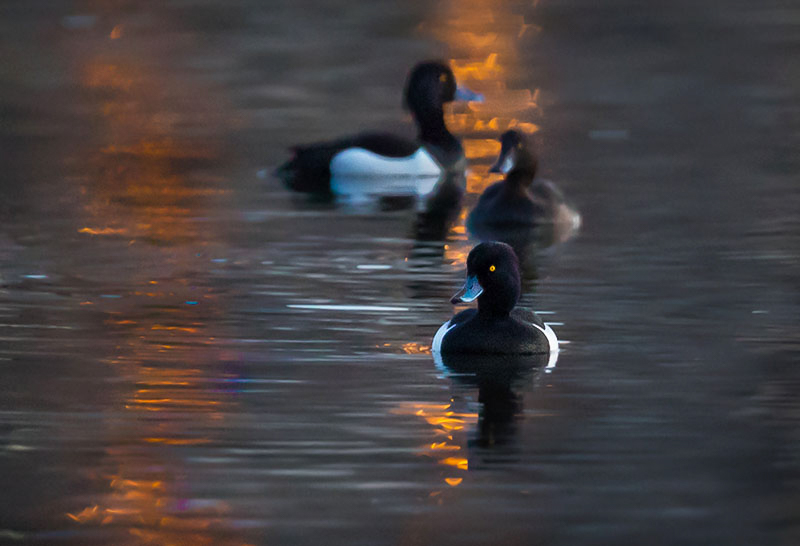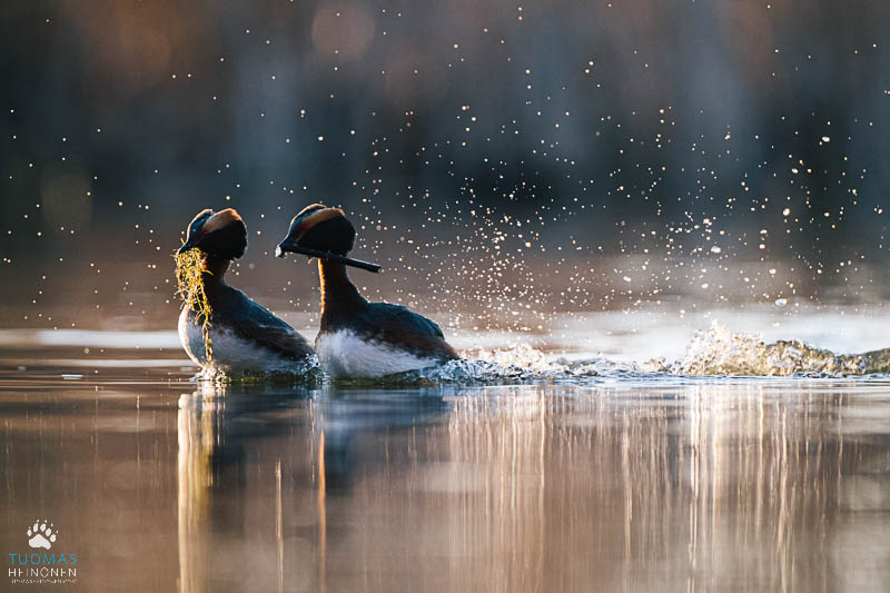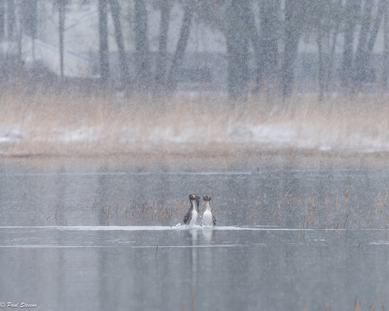 Mustakurkku-uikkujen soidintaa räntäsateessa – Kuva Tuomas Heinonen.