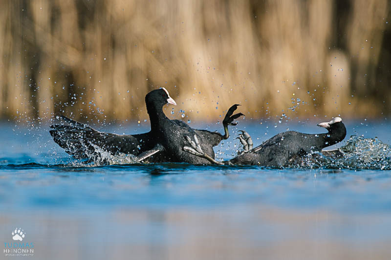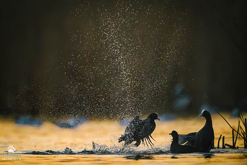 ”Vauhdikas viikko altaalla, taistelut ja soidinmenot kiihtyy ja sää vaihtelee lämpöisestä auringosta aina lumi- ja räntäsateisiin. Tehokkaasti käytetty viikko, kun piti ruokatunnit käyttää lumisateiden kuvaamiseen altaalla. Kuvasin pääosin kaikki kuvani altaan länsireunan koivikosta ja sen tapahtumista. Se sopii nyt parhaiten kuvaustyyliini ja siellä oli myös hyvin tapahtumia. Linnut kuitenkin osaavat välttää ihan parhaat valot, joten huippukuvia ei ole syntynyt – vain paljon hyviä.”