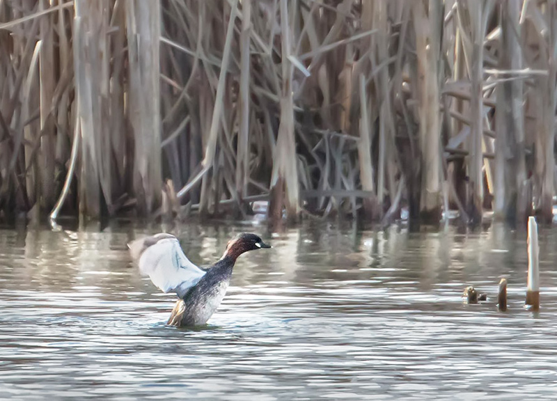 Lintubongareita ilahduttaa altaalle ilmestynyt pikku-uikku, vain räkättirastaan kokoinen vesilintu. Liekö sama joka vietti suuren osan viime kesää alueella. Pikku-uikkuja pesii korkeintaan 20-30 paria Suomessa, ja on aika tuurissa, jos tämä yksilö löytää kumppanin.