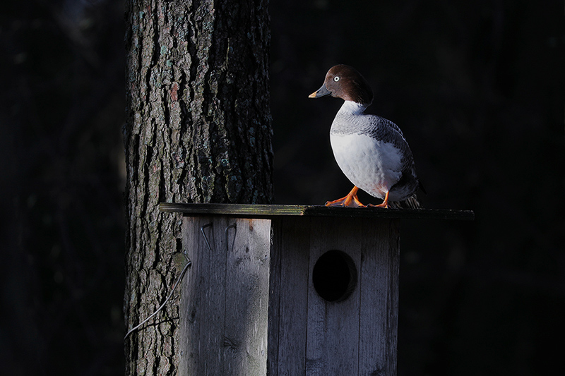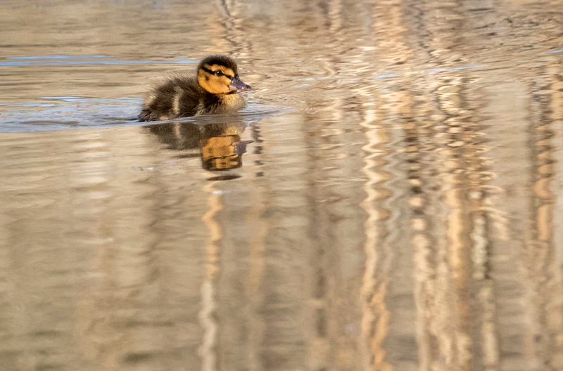 Parin päivän takatalvimaisista räntäsateista huolimatta lintujen soidin ja pesänrakennus edistyi viime viikollakin. Lauantaina (18.4.) allasalueen purossa näkyi myös ensimmäinen sinisorsapoikue, noin kaksi viikkoa normaalikevättä aikaisemmin. Emo uiskenteli kolmen vastakuoriutuneen poikasensa kanssa. Pieni lukumäärä kertoo, että ehkä kaikki munat eivät kuoriutuneet kylmien jaksojen myötä, tai jokin peto oli jo ehtinyt iskeä.