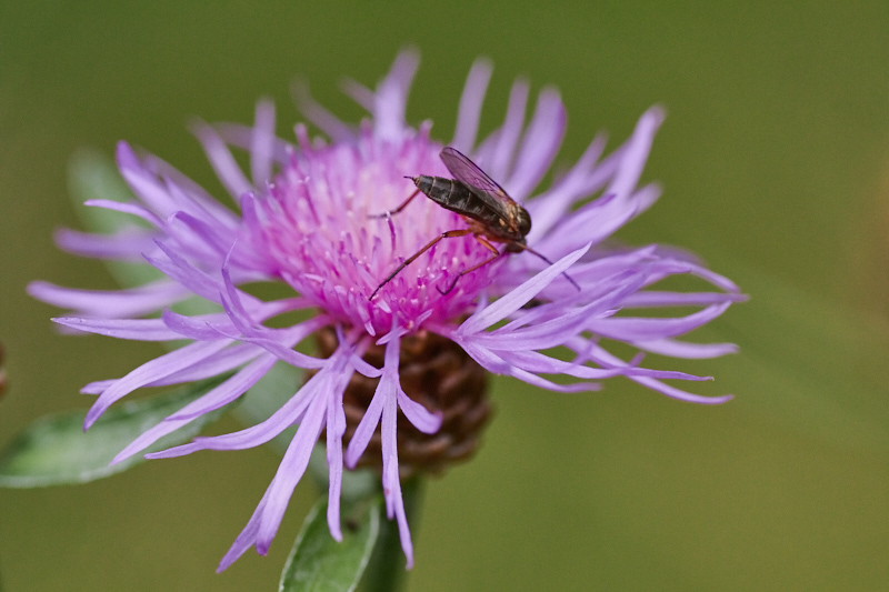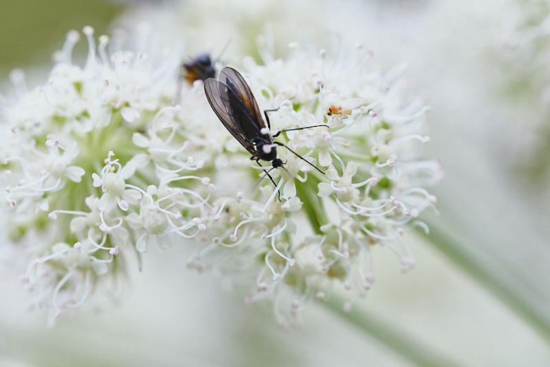 Etsin (JR) tulvaniityn reunan, puronsuun ja altaan reunan koiranputkista veikeitä pyjamaluteita. No mitä sain: yhtä hauskan oloisia, hyttysen kokoisia tuomaansääskiä. Ja niitä oli koiranputket ja jotku heinätkin täynnä, todella paljon.