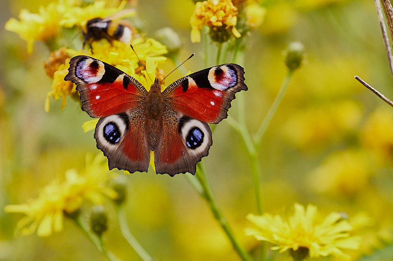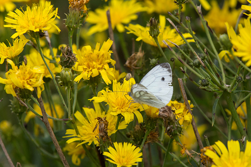 Ohdakkeiden sijasta perhosia on ollut runsaasti vieressä olevilla keltanoilla ja ahdekaunokeilla. Neitoperhosten määrä tuntui olevan laskussa viikon loppua kohden. Alkuviikosta oli vielä paljon, mutta sunnuntaina aika vähän. Joukossa on amiraaleja, kaali- ja lanttuperhosia.