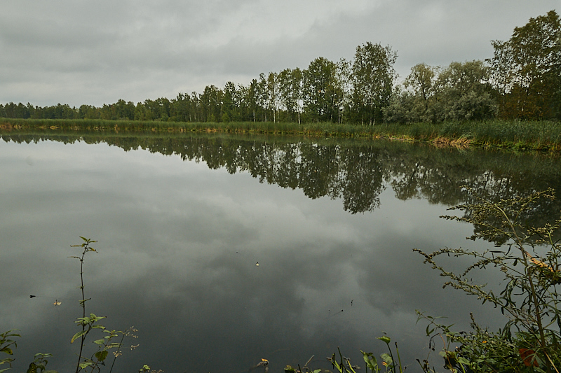 Käytännön syiden takia pääsin (JR) käymään Suomenojalla vasta sateisena viikonloppuna. Oli pilvistä ja vettä sateli vielä sunnuuntainakin. Lauantain saldoksi sademittarimme näytti 22mm. Allas oli kuitenkin rauhallisen tyyni.