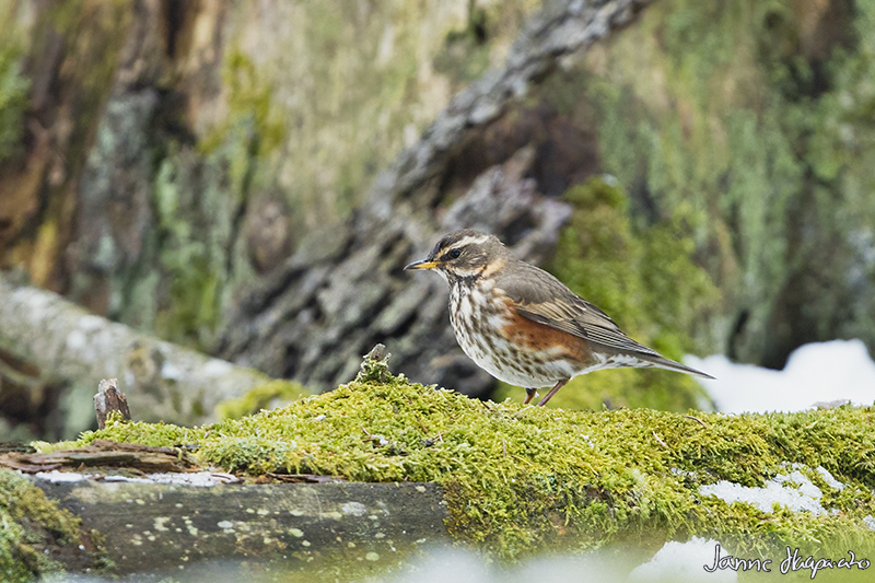 - Punakylkirastas ruokinnalla – Kuva Janne Haapa-aho