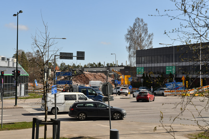 Rusthollarintiellä on liikenne välillä melko sekaisin, kun Kierrätyskeskuksen vieressä räjäytetään kalliota rakentamista varten.”