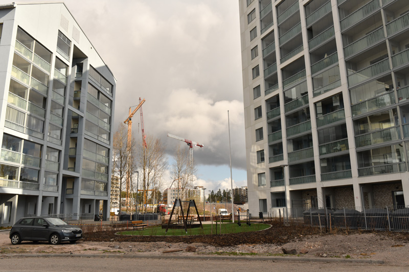 ”Rakentamista on joka vaiheessa. Uusia asukkaita muuttaa jo valmistuviin taloihin, kun naapurissa tehdään töitä eri vaiheessa. Uusimmat talot ovat jo saaneet piha-alueensa kuntoon.Vanhojen bussivarikoiden alueella rakennetaan uusia taloja ja Kaitaantien eteläpuolella tasoitetaan alueita rakennustöiden aloittamista varten.