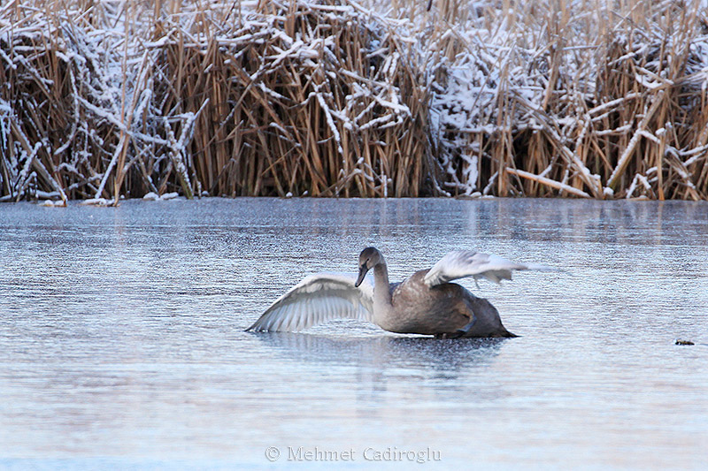 - Nuori kyhmyjoutsen – ehkä ensi kertaa jäällä – Kuva Mehmet Cadiroglu