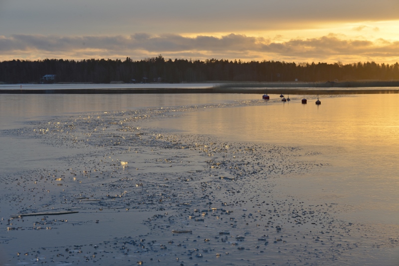 Kulunut viikko alkoi reilulla pakkasella. Tulvaniitylle muodostui kova, kävelyn kantava pinta. Meri jäätyi sataman edustalta. Muutama vene oli vielä laiturissa. Miten mahtavat selviytyä talven yli?