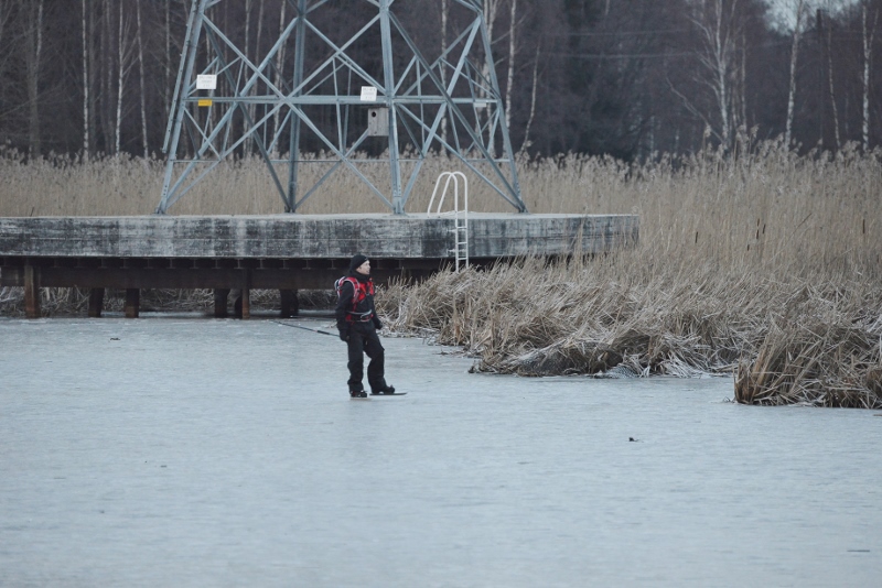 Loppuviikosta ilmaantui altaalle luistelija. Luisteli juuri heikon jään alueella. Rohkea teko huolimatta uudelleen pakastuneesta ilmasta.