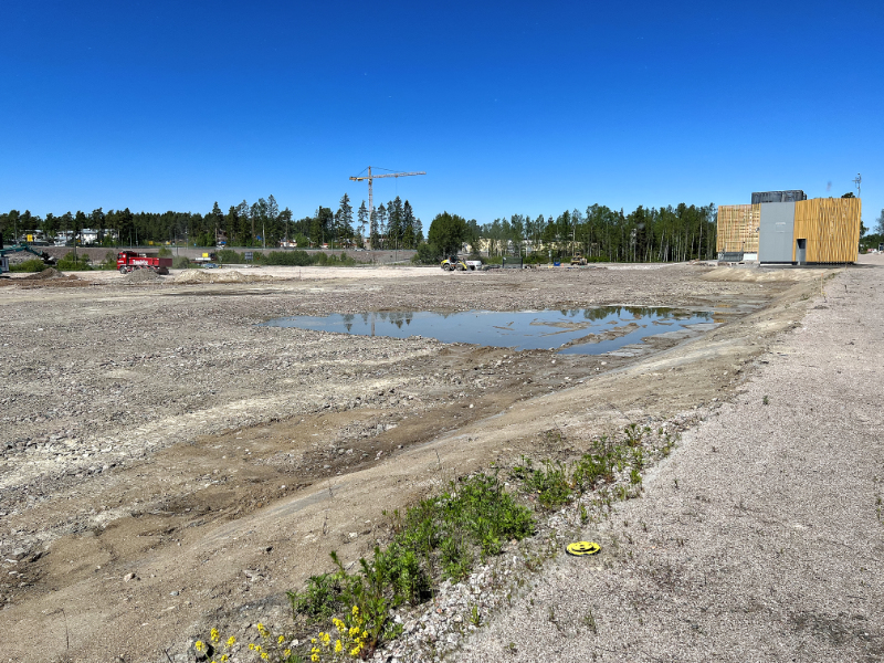 Täyttömäen alue on nyt tasattu ja ilmeisesti pilaantunut maa on kuljetettu pois. Vain pienimuotoisia töitä on käynnissä. Uusi kävelytie, ns. Espoon baana näyttää olevan auki ja mahdollistaa kävelyn parkkipaikalle. Baanan varrelle ja hulevesialtaan ympäristöön kuin myös läntisen kävelytien alkupäähän on istutettu päiväkakkaroita.