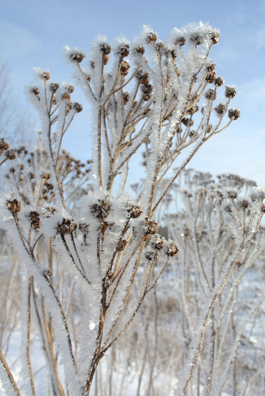 Muutamana aamuna pakkanen ja ilman kosteus saivat puut ja pensaat kauniiseen kuuraan.
