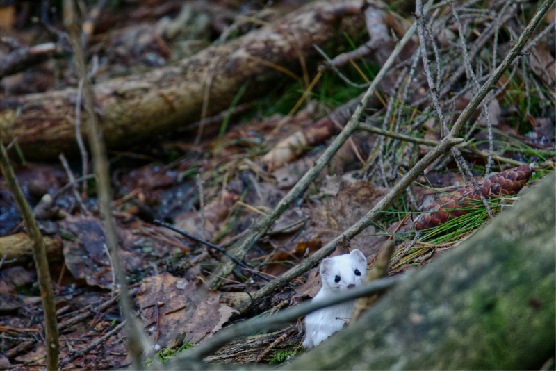 Ruokintapaikalla vipelsi muutamana päivänä lumikko, joka tutki koloja. Ilmeisesti esti myyriä ja hiiriä. On todella vikkelä ja vaikea kuvattava. Myös orava viihtynyt ruokintapaikalla ja kerää maasta siemeniä.
