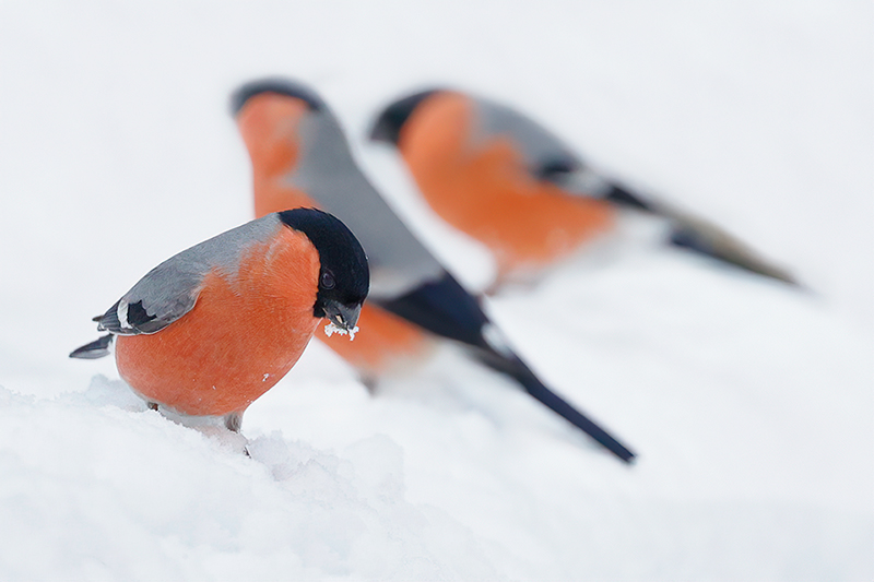 - Punatulkku lumisateessa – kuva Janne Haapa-aho