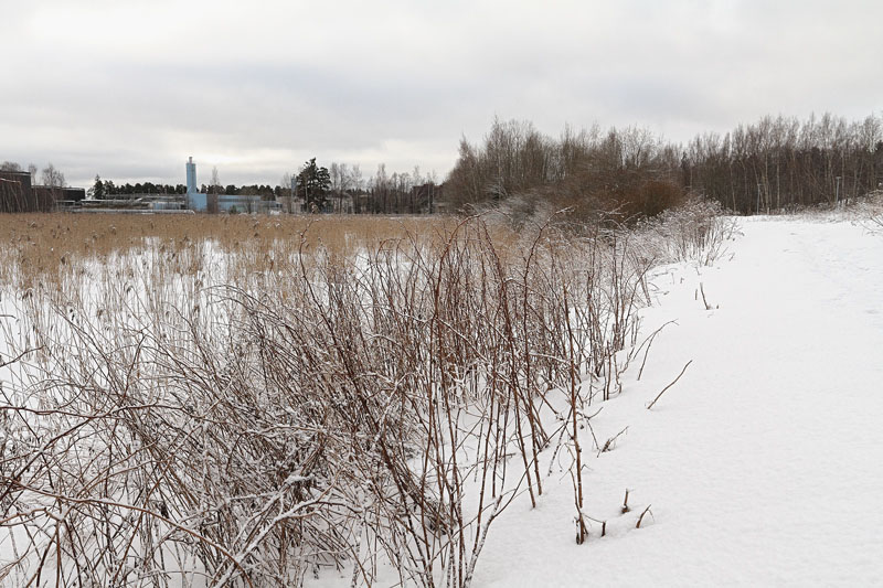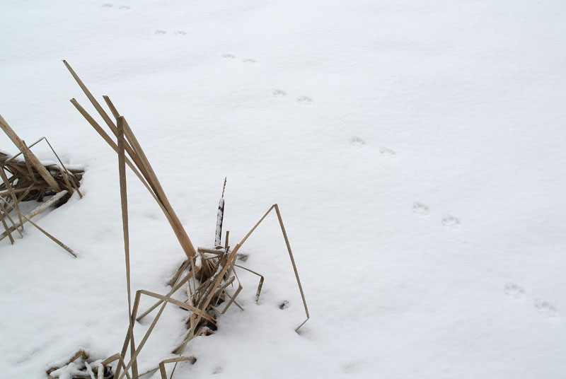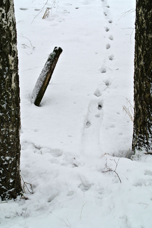Pikkuhiljaa alkaa olemaan elämää. Eläinten jälkiä – ketun ja muidenkin alkanut näkymään entistä enemmän. Merkillinen oli jälki, joka näytti siltä, että alamäkeä oli lasketeltu kuin pulkalla ja sitten taas juostu. Supi? Tuuhea turkki sattaa jättää laskettelujäljen. Supiahan on Suomenojalla. Kaupunki on niitä hävittänytkin linnuille aiheutuvien vahinkojen vuoksi. Pikkutikka hakkasi – ei puuta , vaan pujon ja takiasten varsia. Kävi systemaattisesti läpi talven törrötäjiä ja aina, kun vaihtoi vartta kuului merkki ”kiik”. Kahaukan huutoa kuului.