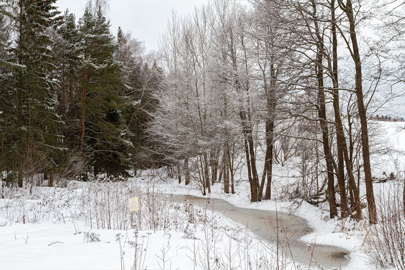Suojasää ja sade sai kuitenkin sen aikaiseksi, että purojen jään päälle tuli vesikerros.