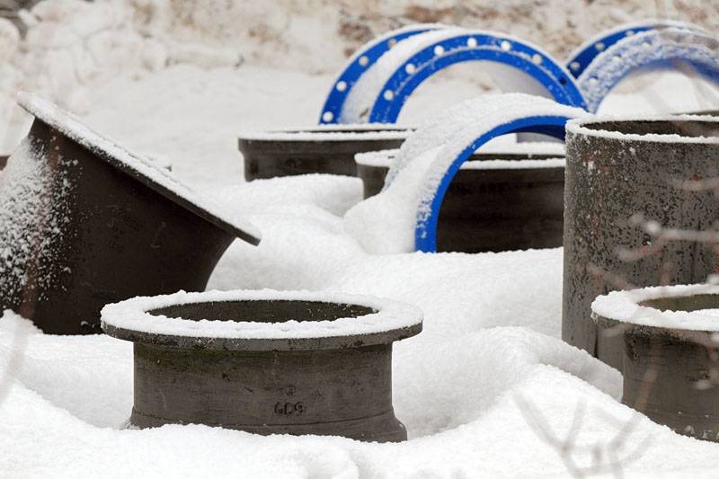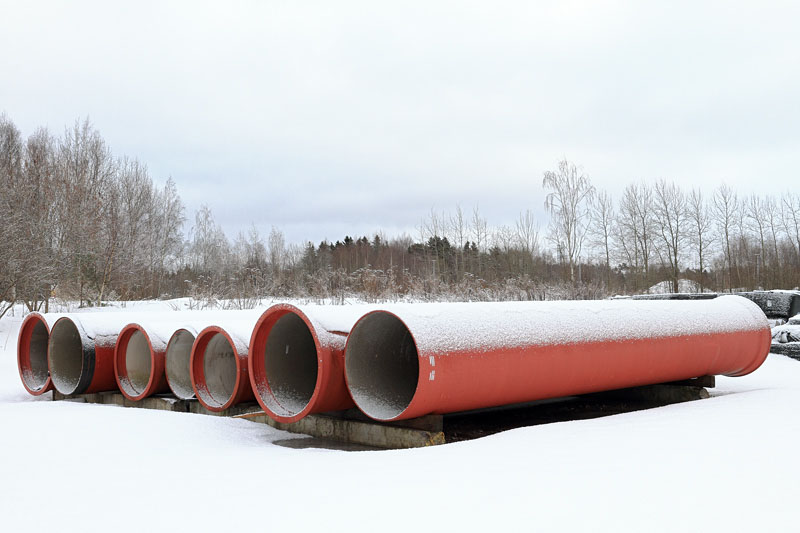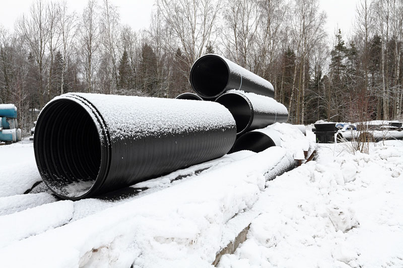 Kaupungin varikkoalueella on putkien määrä lisääntynyt – oikeastaan aika runsaasti. Väyliä on aurattu ylös harjanteelle saakka. Tomaattipellon päälle ei putkia ole varastoitu. Olisikohan tomaatit kaupungin viljelmiä 😉