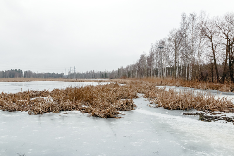 - Myös tulvaniitty on vielä jäässä – Kuva: Jukka Ranta