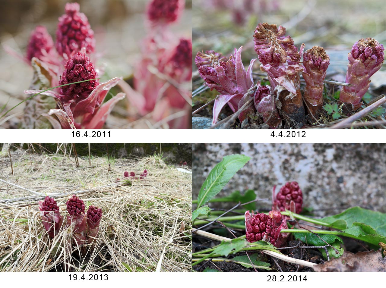 Yksi kevään varmoja merkkejä on ollut etelänruttojuuren pulpahtaminen esiin. Tänä vuonna se tapahtui kuluneella viikolla eli aikaisemmin kuin koskaan Suomenojan Luonnon tehdessä havaintoja. Toinen kuvakooste kertoo ajankohdan, jolloin etelänruttojuuri on tullut esiin (kuvauspäivä kertoo esiintulon viikon). Tätäkin katsellessa on syytä muistaa edellisten talvien lumisuus ja näistä näkyy erityisesti viime vuoden pitkä talvi ja myöhäinen kevät.